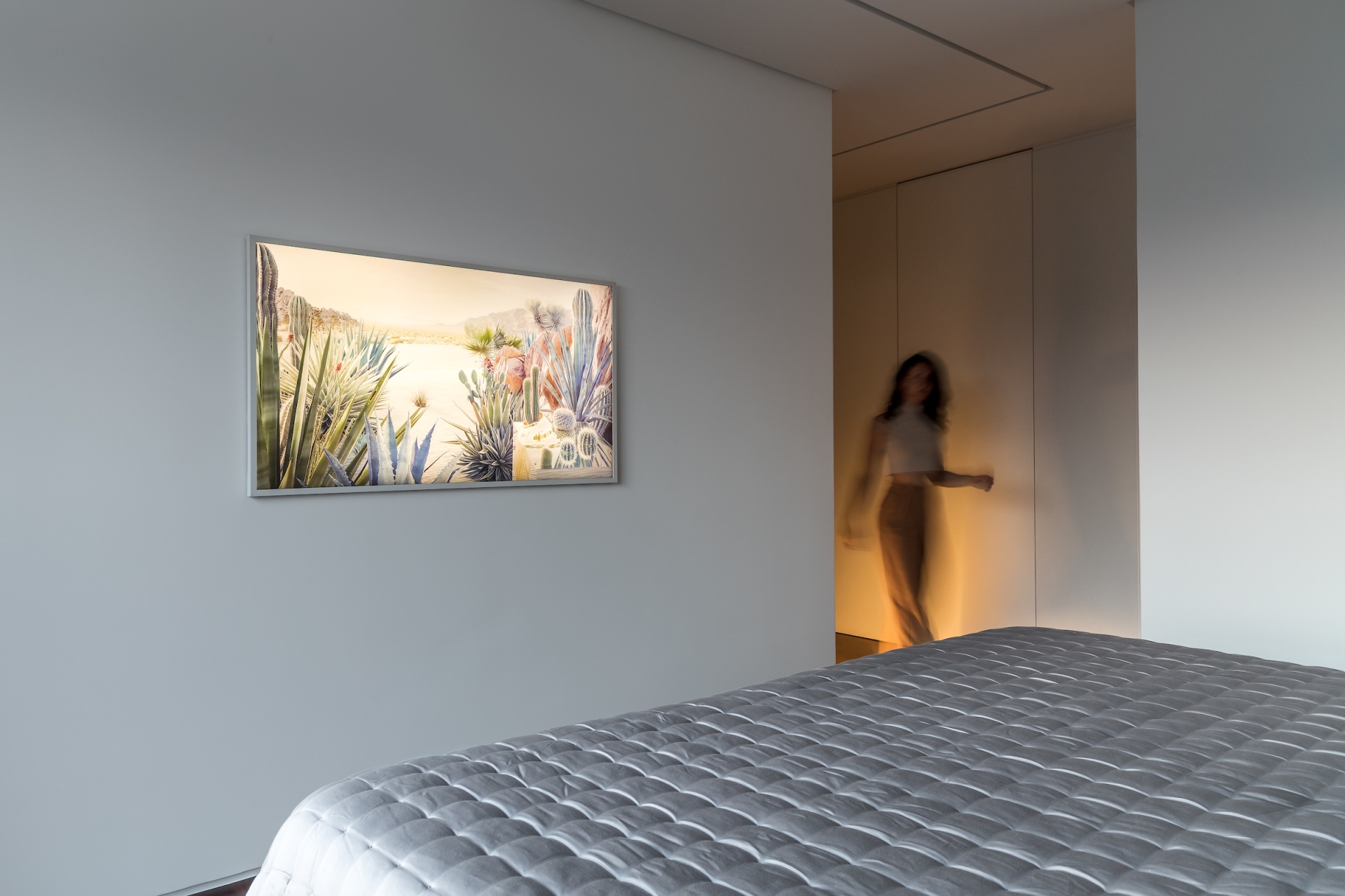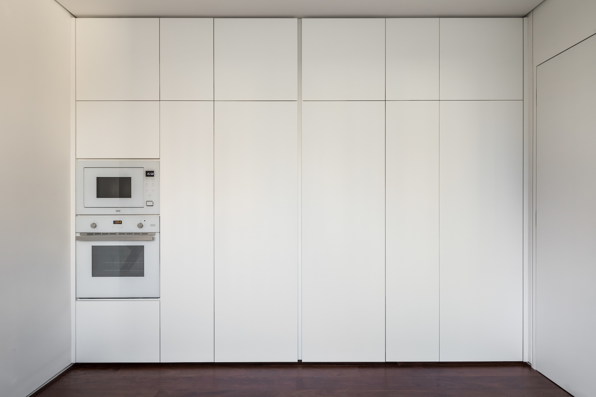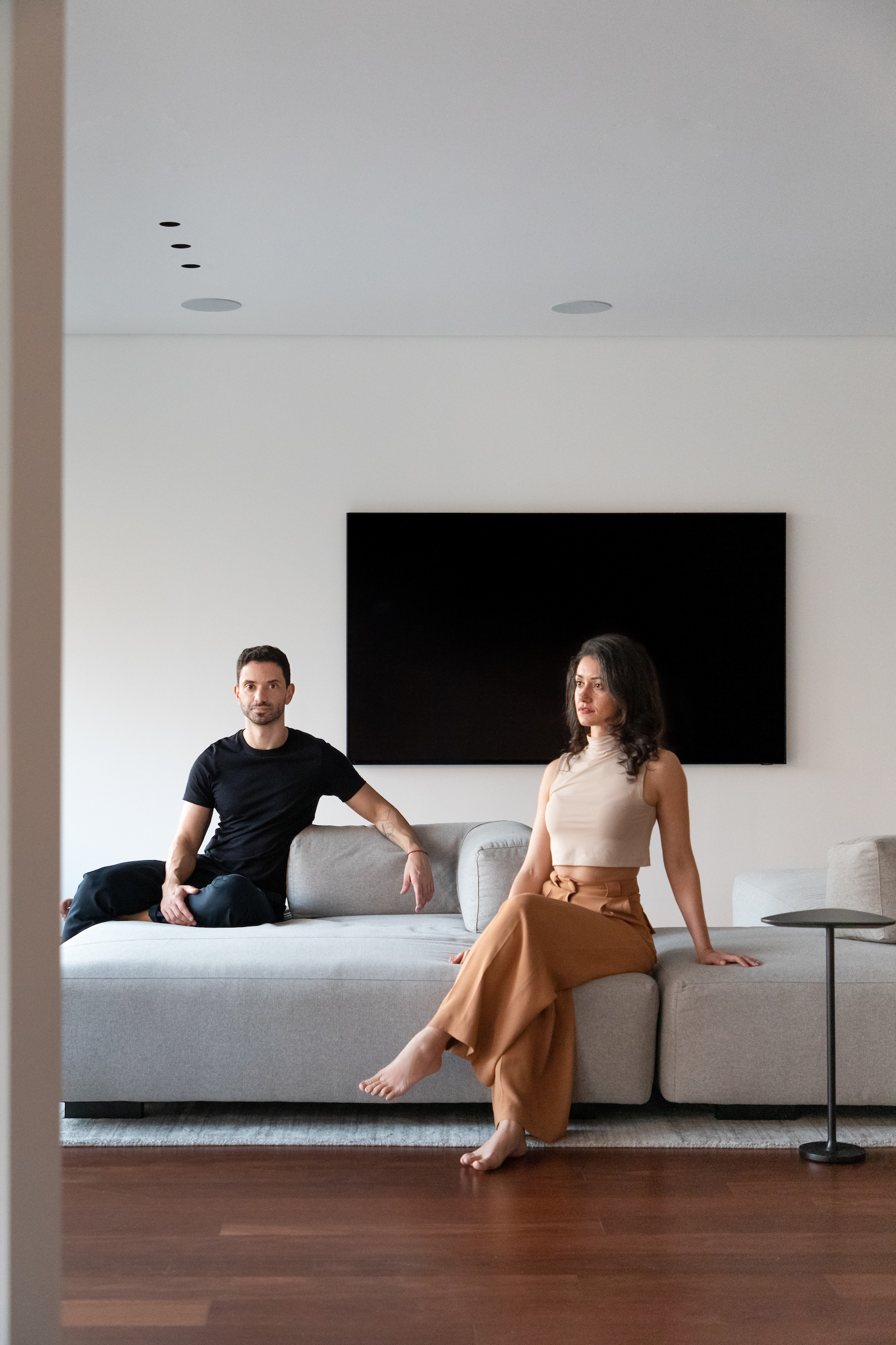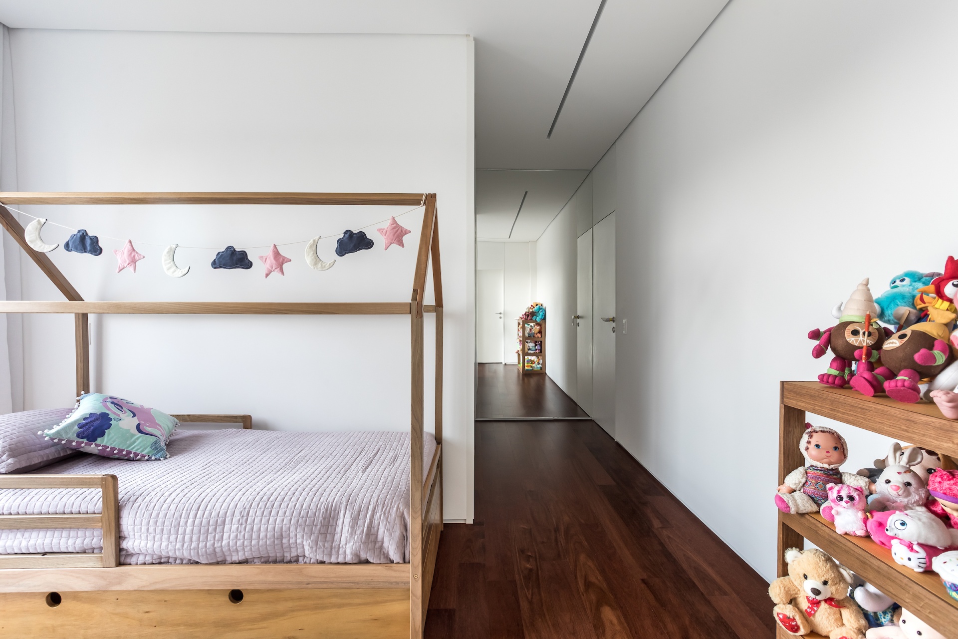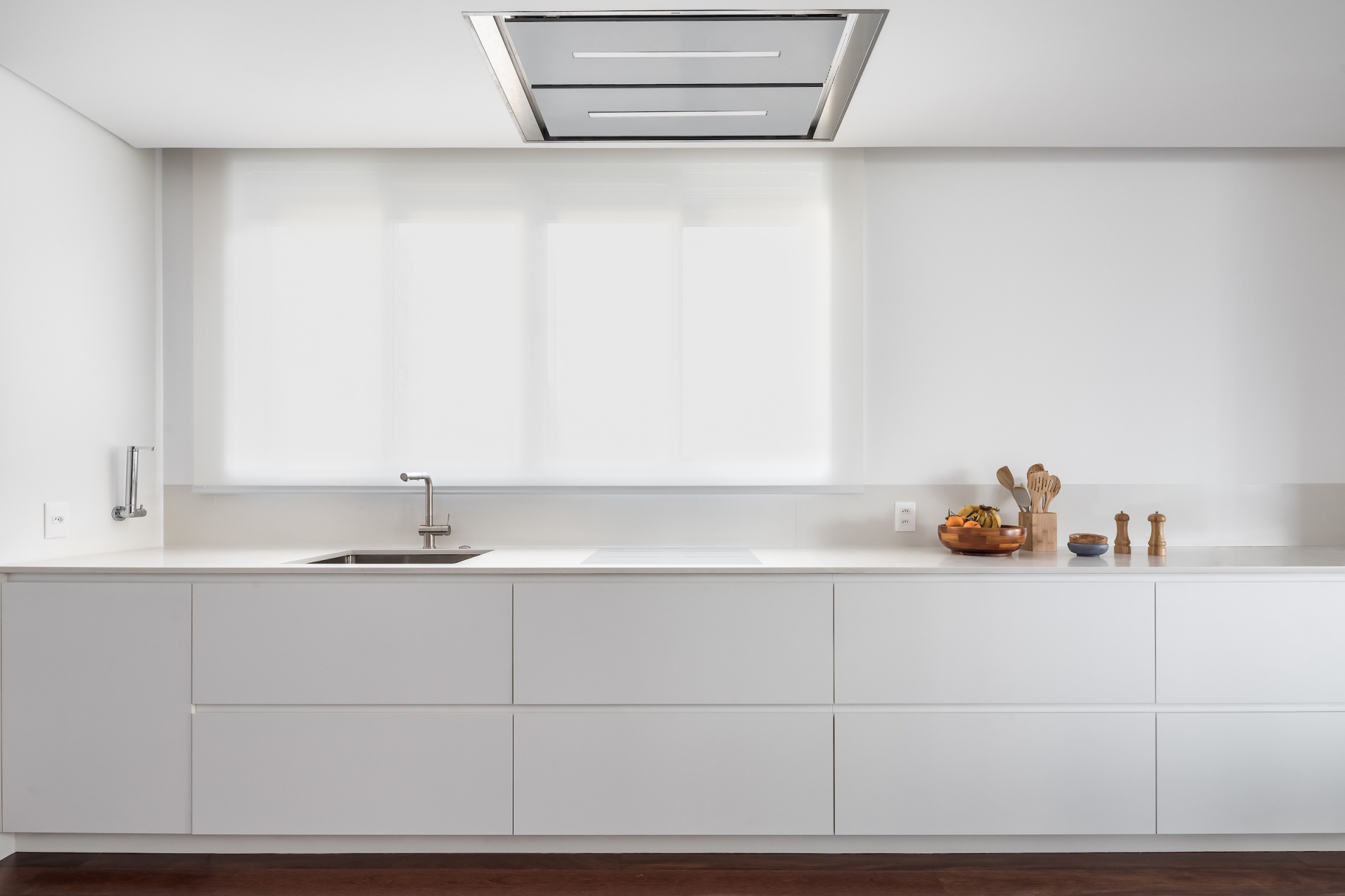 As soon as you step into the 290 m² apartment in Curitiba, PR, you enter a small black box where ebonized wood in the ceiling and walls conceals the lift and restroom doors in the hall, creating some perspective. Just a few steps and a luminous room is disclosed, where tree canopies emerge from the windows and contrast with the clean architectural features. Among white walls, glass panes and natural wood floor – where, surprisingly, even a playroom has its place –, the carefully chosen curvilinear loose furniture stands out, with pieces signed by Sergio Rodrigues, Jader Almeida, Guilherme Wentz and Estudiobola.