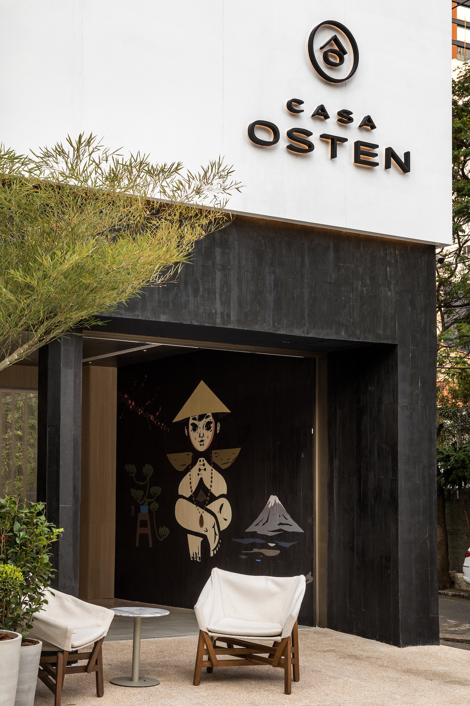 A Casa Osten é o lugar que diversos universos se encontram e constroem o cenário perfeito para experiências surpreendentes e encontros estimulantes. No projeto, o conceito Omotenashi, filosofia japonesa de hospitalidade, foi o elemento principal desde o ínicio de sua concepção. Além de um ambiente imponente, o projeto possuí uma atmosfera acolhedora que trabalha os espaços como ambientes de experimentação e encontros.