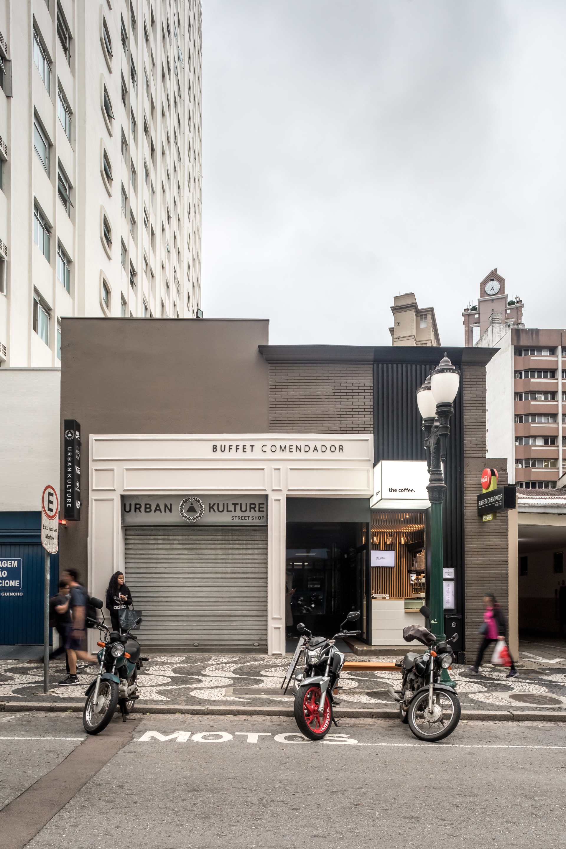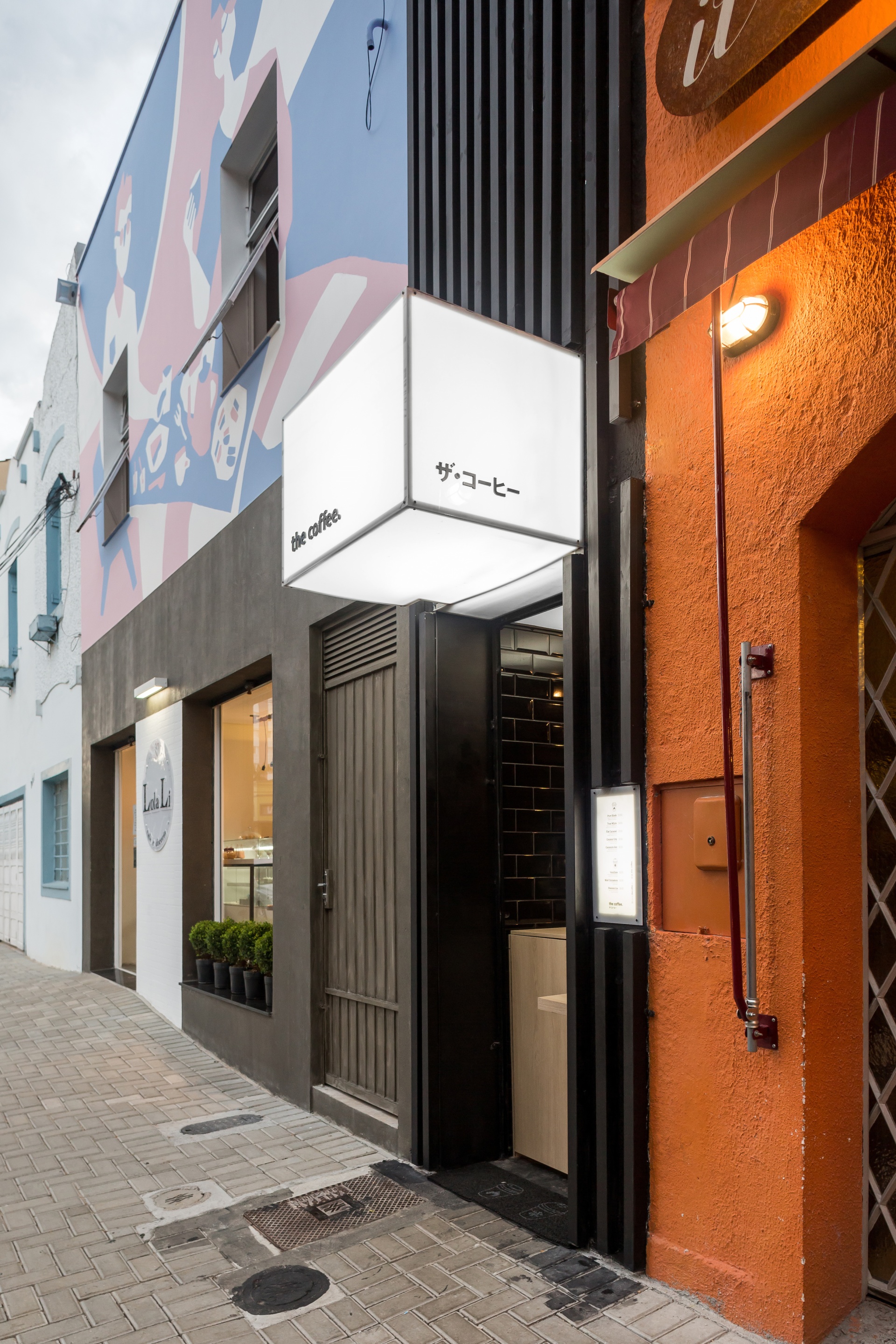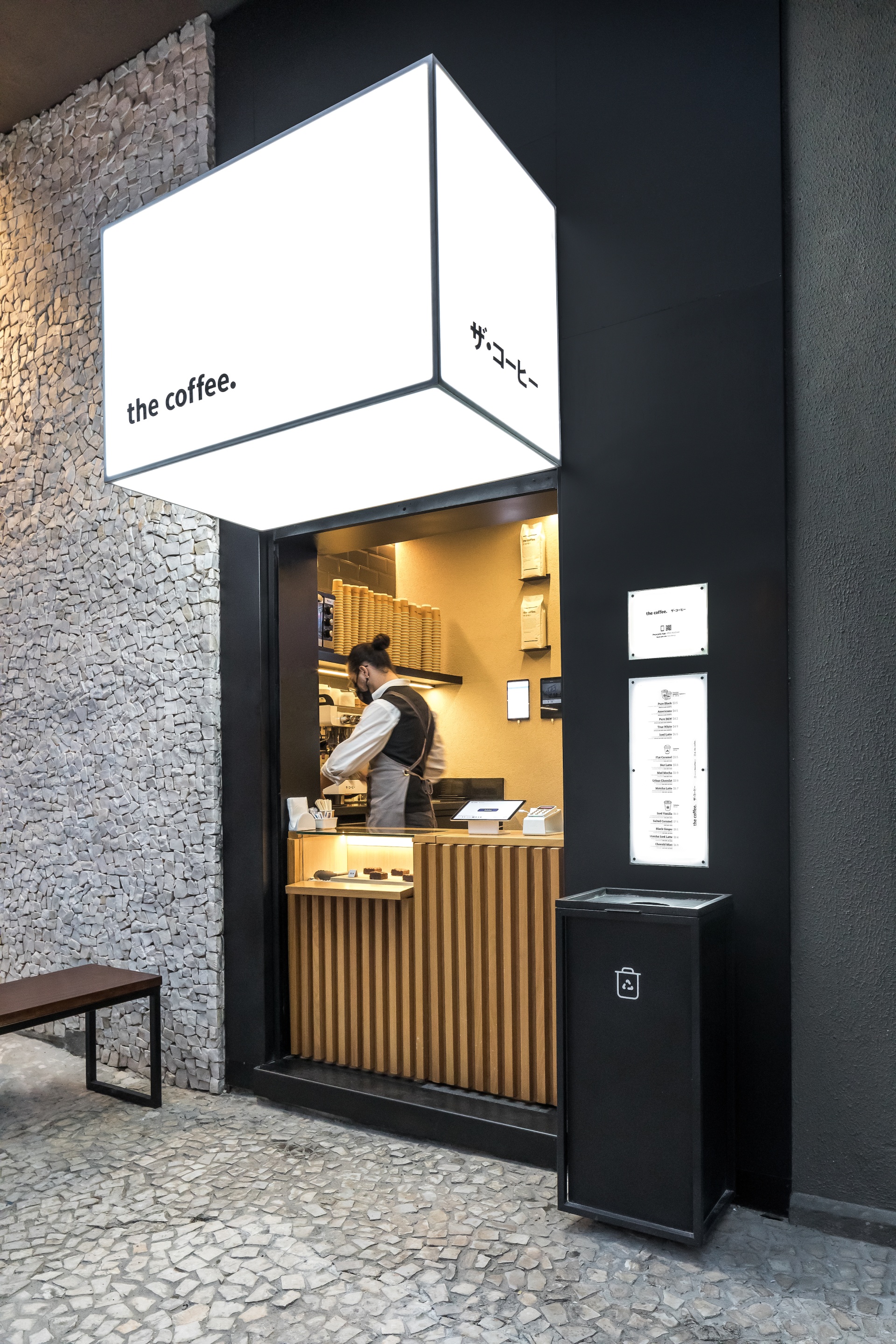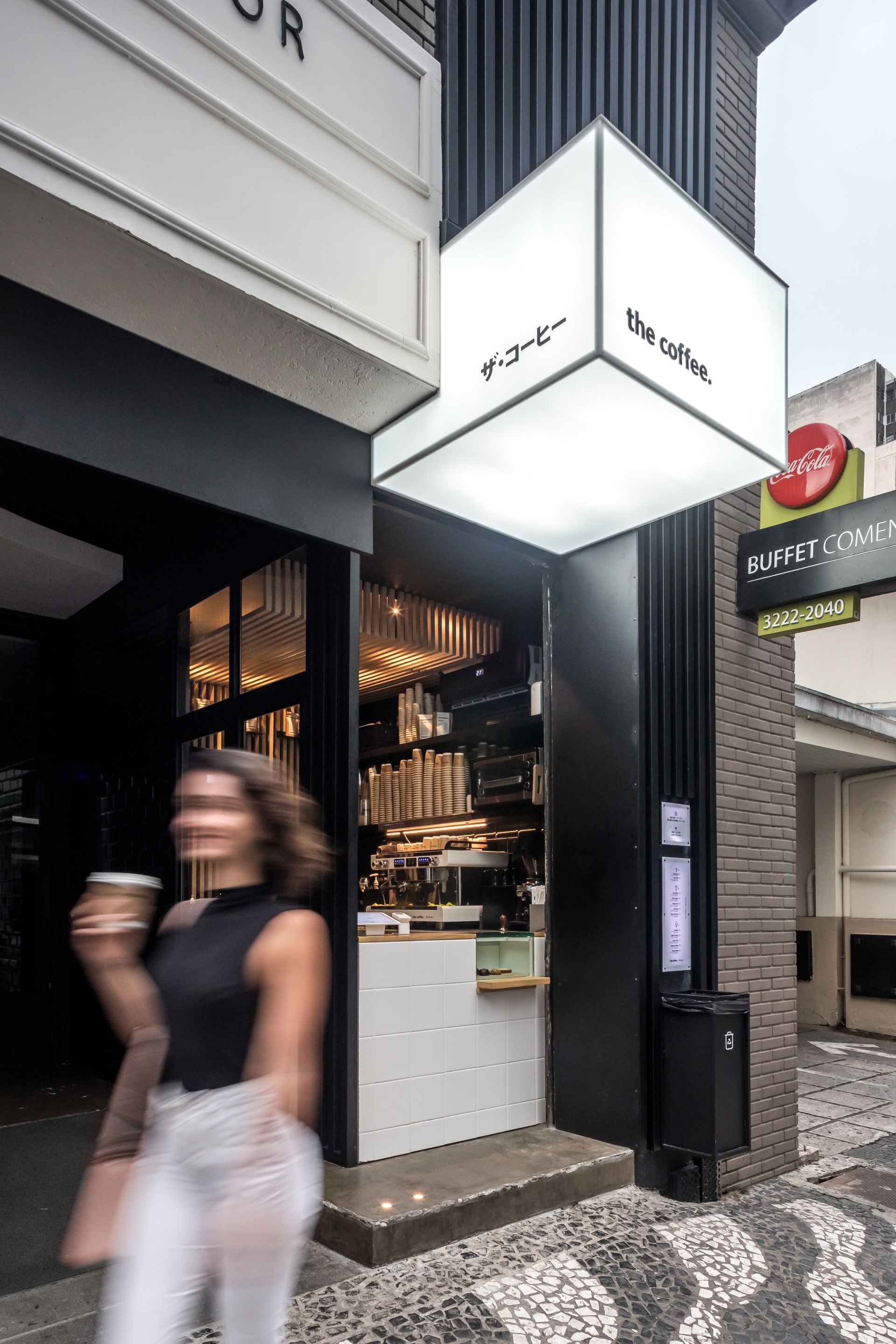 Inspirado na simplicidade e minimalismo japonês, o projeto de arquitetura busca destacar o café das demais edificações ao lado, verticalizando a fachada para que, mesmo estreita, tenha imponência. O pequeno interior de 3m² foi o desafio, já que não além de não permitir muitas possibilidades de layout, a posição da máquina de café expresso era determinante. A composição de materiais é simples: estrutura metálica preta, madeira clara e o acrílico que, quando aceso, revela o melhor: a luz. O cubo iluminado é o ponto focal do café, demarcando a entrada, fazendo a proteção em dias de chuva e brilhando ao cair da noite. Cosmopolita e atemporal, não é apenas uma proposta de arquitetura, é uma experiência, um novo modo de relação de atendimento ao cliente e uma nova maneira de interagir com a via pública. Antes, a calçada dava espaço à circulação de pedestres e hoje faz parte do todo, integrada ao conceito do café.